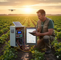 Controlador de riego inteligente adaptable a energía alterna o directa. Ideal para zonas agrícolas sin acceso constante a electricidad.